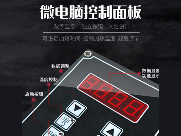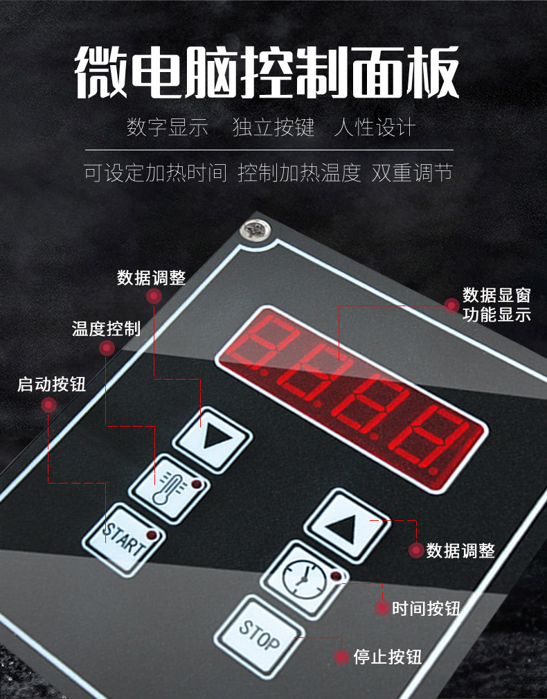 5、調節所需加熱時間,按下啟動按鈕,加熱開始。當工件加熱至所需時間主機將會自動關斷電源或按一下停止開關。